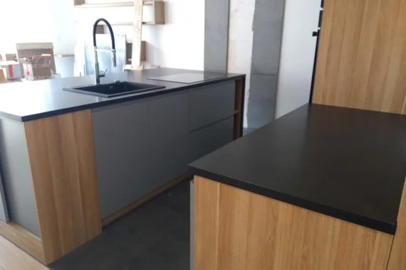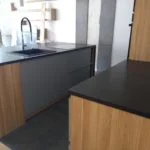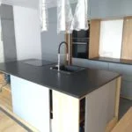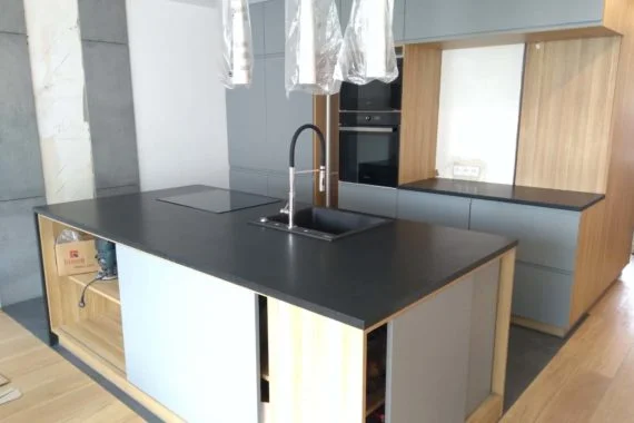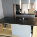 Kuchnia z wyspą z czarnego satynowanego granitu – Gdynia